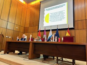 Esta colaboración fue destacada por la profesora de la Facultad Elvira Afonso, que inauguró la jornada. Por su parte, el coordinador del área de Formación del Colegio, Jorge Agudo, se dirigió especialmente al alumnado presente para animarlo a ser el relevo generacional que requiere nuestra profesión.